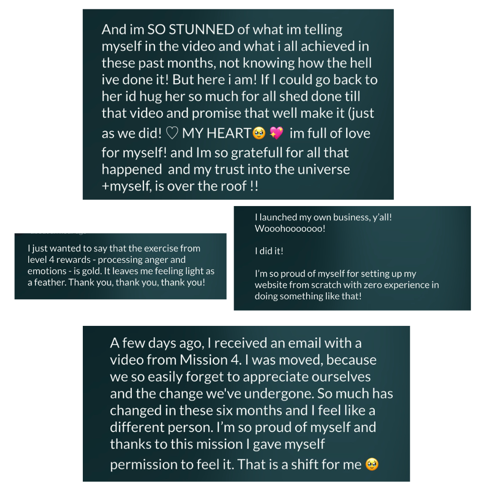 Missions consist of tasks, guidance, or prompts that help you progressively shape your reality, one step at a time. Missions could be meditations, lessons, energetic practices etc.